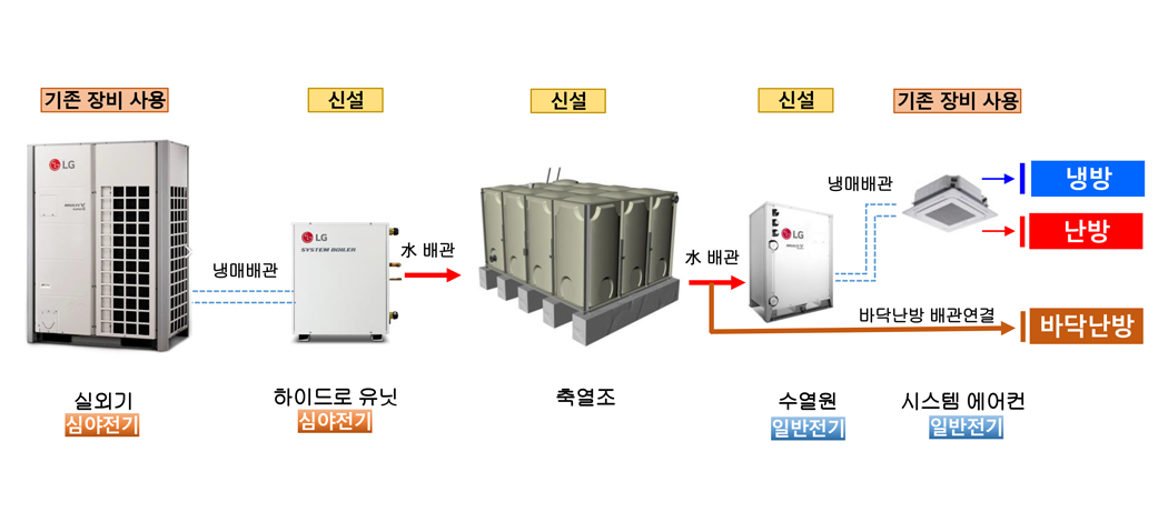 | 시스템의 구성 | 실외기, FCU(실내기), 축열조 |