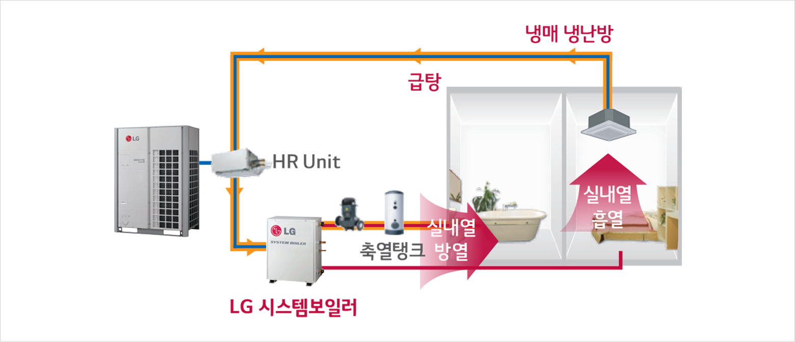 | 시스템의 구성 | 실외기, FCU(실내기), 축열조 |