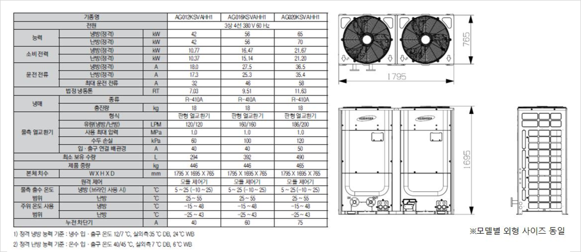 냉수, 온수 및 저온수를 만드는 공랭식 히트펌프