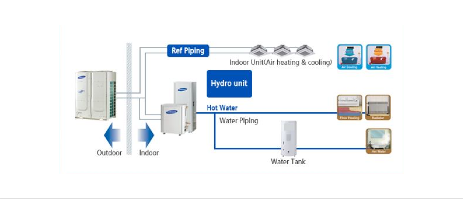 실외공기의 열을 흡수, 실내에 공급하는 히트펌프 기술을 이용한 바닥난방/급탕 제품, 유럽에서 재생에너지(Renewable Energy)로 지정된 친환경 고효율 제품을 말합니다.